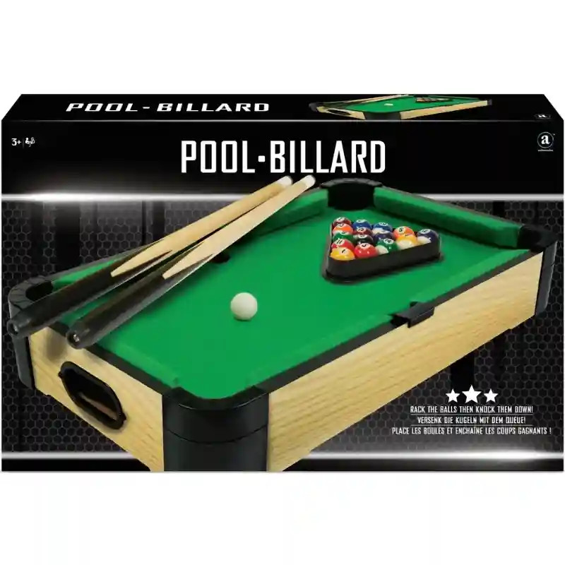 Ez a kompakt biliárdasztal készlet fából tökéletes választás otthoni játékhoz vagy akár utazás közbeni szórakozáshoz. Kis méretének köszönhetően bármilyen sík felületen könnyedén használható, így ideális gyors, kétfős mérkőzésekhez. A masszív fa kialakítás tartós és stabil játékélményt biztosít, miközben a klasszikus biliárd hangulatát hozza el kisebb méretben. A golyók a pályán gördülnek, a falakról visszapattannak, majd a lyukakba kerülnek, akárcsak a valódi biliárdasztalon. A készlet minden szükséges kiegészítőt tartalmaz, így azonnal elkezdhető a játék. A két dákó lehetővé teszi a klasszikus párbajokat, míg a teljes golyókészlet és a háromszög segíti a hagyományos játékmenetet. A kb. 50 × 30 cm-es méret könnyű tárolást és szállítást tesz lehetővé, így a játék bármikor elővehető. 3 éves kortól ajánlott, és remek választás mindazok számára, akik szeretnék játékos formában megismerni a biliárd alapjait és élvezni a közös játék örömét.