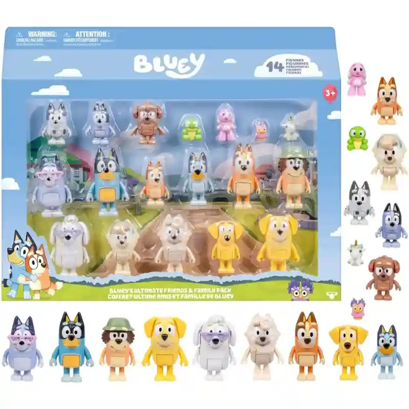 Hozd el Bluey vidám világát az otthonodba a Bluey családja és barátai 14db-os figuraszettel! Ez a különleges, nagyméretű készlet 14 részletgazdag figurát tartalmaz, köztük Bluey, Bingó, Csibész, Szimat, Zokni, Gombóc, Nagyi, Nagypapa és még sok más szereplő. A csomag négy figurát is tartalmaz Bluey legkedvesebb játékai közül, így még több mókás történetet alkothatsz. A figurák kb. 5–8 cm magasak, ezért tökéletesen illenek a kisgyermekek kezébe. Mindegyik szereplő mozgatható karokkal és lábakkal rendelkezik, így tetszés szerint beállíthatók, hogy újraalkothasd a kedvenc jeleneteidet a sorozatból, vagy megalkothasd a saját kalandjaidat. Néhány karakterhez kiegészítők is tartoznak, amelyeket tarthatnak vagy viselhetnek. Ez a gazdag játékszett mindent tartalmaz, amire szükséged van, hogy megteremtsd Bluey és családja vidám világát, és képzeletbeli játékokon keresztül újraéld a szeretett mesék varázsát. Tökéletes választás minden Bluey-rajongónak, aki szeretne együtt játszani, mesélni és nevetni a kedvenc szereplőivel.