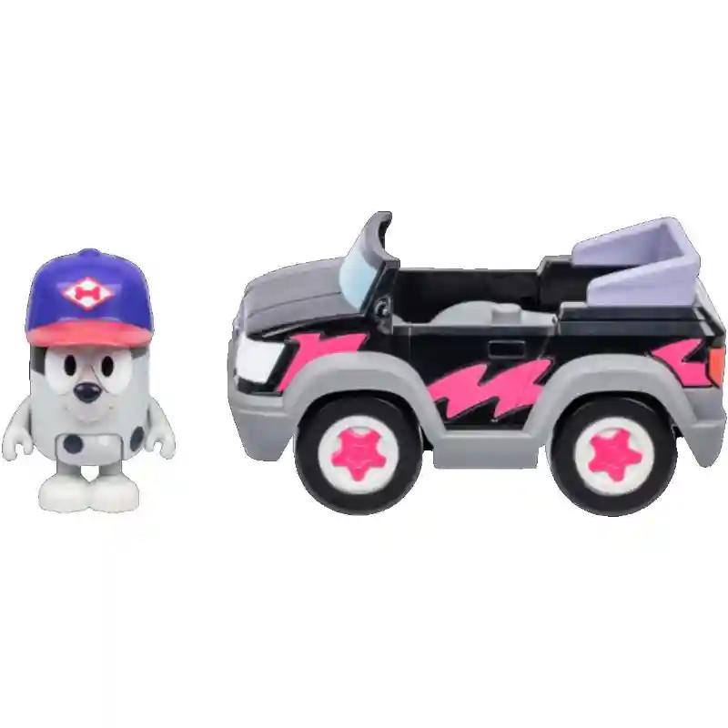 Bluey - Gombóc és pizzafutár autója: induljon a móka Bluey és barátai járműveivel! Ebben a készletben Gombóc ül a vidám pizzafutár autó volánja mögé, készen az új kalandokra. Az autóba egy kb. 6–8 cm-es, mozgatható végtagokkal rendelkező figura fér el. A szett tartalmaz 1 járművet és 1 Gombóc figurát, de más Bluey-figurák is (külön kaphatók!) beültethetők a járműbe, így még több történet és játékélmény vár a gyerekekre. Ideális választás minden Bluey-rajongónak 3 éves kortól.
