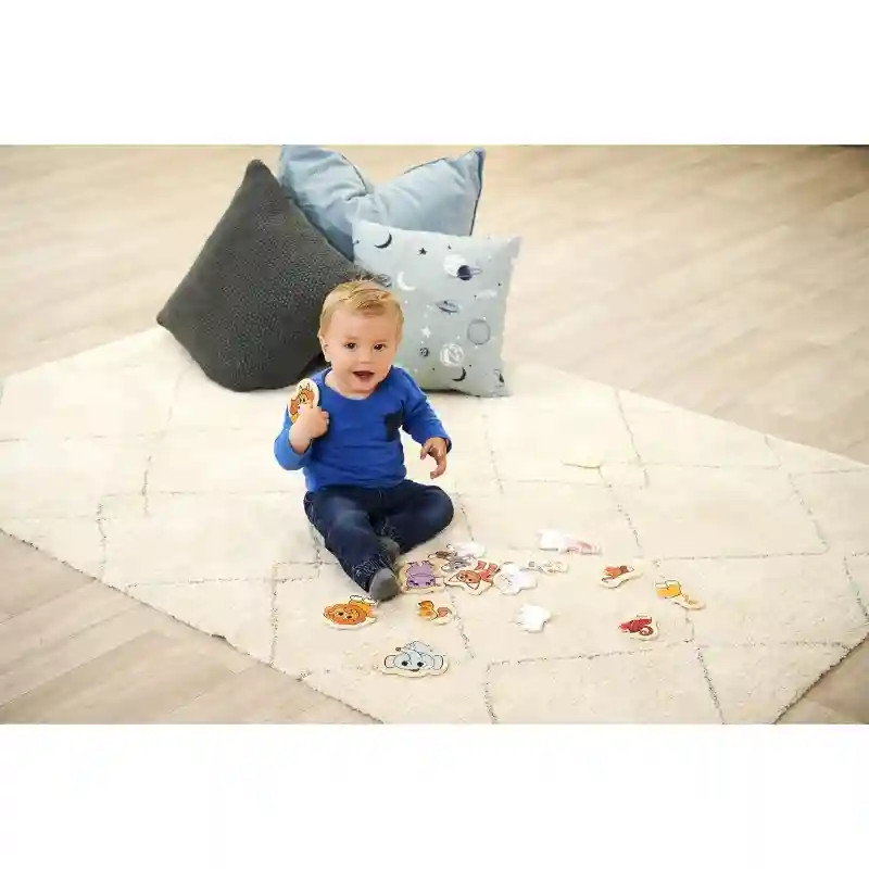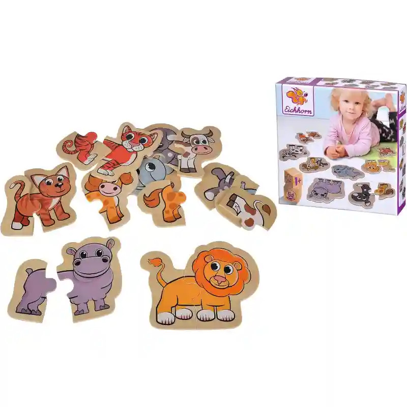Fedezd fel az állatok vidám világát az Eichhorn 16 darabos állatos fa kirakóval! A színes, kedves minták és a nagy méretű elemek ideálisak a legkisebbek számára, akik játék közben is tanulni szeretnek. A kirakó 8 különböző állatfigurát tartalmaz, melyek élénk színeikkel és barátságos megjelenésükkel ösztönzik a gyerekeket a játékra és a felfedezésre. A nagy méretű puzzle-darabok tökéletesen illenek a kis kezekbe, így már az 1 éves kortól kezdődő játék is könnyen kezelhető és biztonságos. A kirakó remekül segíti a kéz-szem koordináció, a térlátás és a finommotoros készségek fejlődését, miközben a gyerekek szórakozva tanulnak. Az Eichhorn kirakó 100%-ban FSC-tanúsítvánnyal rendelkező fából, fenntartható erdőgazdálkodásból készül. Ez biztosítja a kiváló minőséget és a környezettudatos gyártást.