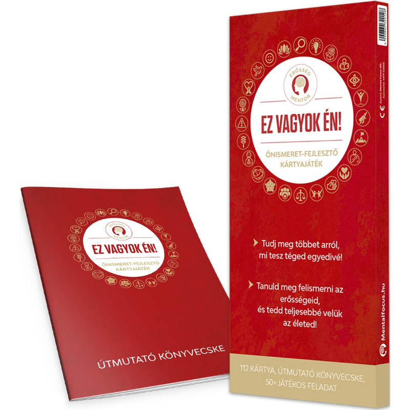 Az Ez vagyok én! önismeret-fejlesztő kártyajáték a benned rejlő erősségek felfedezéséhez nyújt segítséget. A kártyákat egyedül használva megtalálhatod a fő erősségeid, amelyek meghatározzák, ki is vagy valójában. Saját személyiséged fő erősségeinek használata eredményezi életed legnagyobb boldogságát a mindennapokban. A személyes erősségeid természetükből adódóan építenek, energetizálnak és feltöltenek pozitív érzelmekkel. Éppen ezért nagyon fontos, hogy megtaláld azt az 5–7 fő erősséged, amelyek a leginkább meghatároznak téged. A jó hír, hogy mindehhez a saját elhatározásodon és a kártyákon kívül senkire és semmi másra nem lesz szükséged. Szülőként, tanárként vagy trénerként másoknak is segíthetsz az erősségeik felderítésében. A kártyajáték csoportos és otthoni használatra is alkalmas. Akár otthon, akár az osztályteremben, vagy egy csoportfoglalkozás vezetőjeként, ezek a kártyák arra ösztönzik az embereket, hogy beszéljenek és gondolkodjanak arról, kik is ők valójában, melyek az őket meghatározó erősségeik, mit szeretnek, és hogyan kapcsolódnak a körülöttük lévő világhoz.