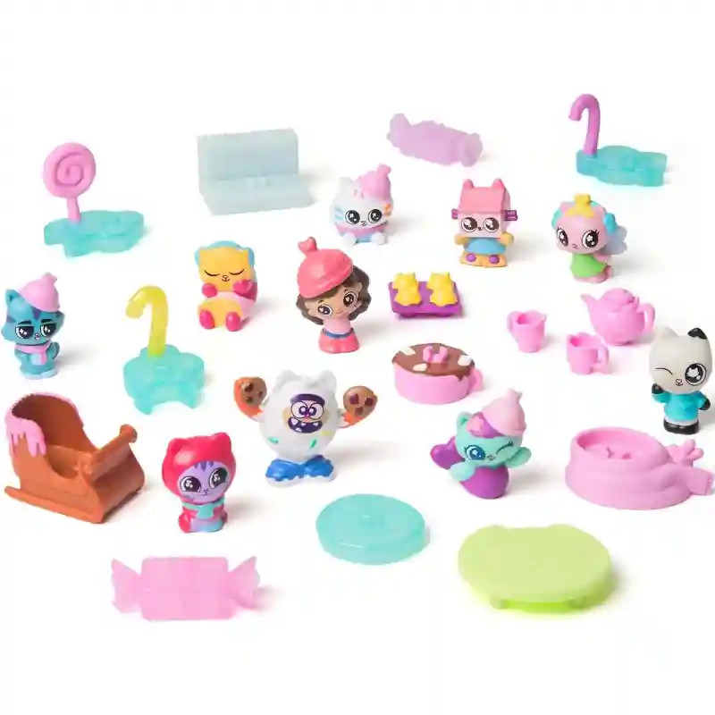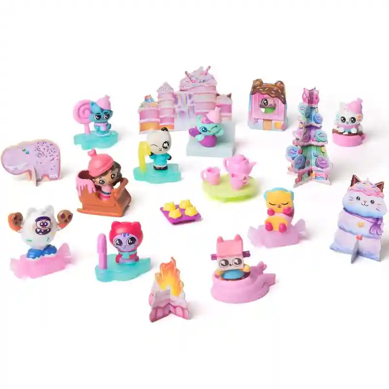 Készülj az ünnepekre Gabival és cicabarátival! A Gabi babaháza: A film - Adventi kalendárium, naptár figurákkal igazi miaú élményt kínál – 24 csodás meglepetéssel, amelyek minden nap új örömöt hoznak az adventi időszakban. A naptár ajtói mögött kis meglepetésjátékok várnak, köztük egy exkluzív Gabby figura, valamint 9 cuki cica barát és még sok más kiegészítő. A Gabi babaháza rajongói újraélhetik kedvenc pillanataikat a Gabby’s Dollhouse: The Movie jeleneteiből, vagy saját havas kalandokat találhatnak ki a figurákkal és kiegészítőkkel. A készlet 10 figurát, 10 talapzatot és 5 kiegészítőt tartalmaz, amelyekkel megalkothatod Gabby varázslatos világát. Kombináld őket a babaház-szobákkal, bútorokkal és játékkészletekkel (külön kaphatók!), és engedd szabadjára a fantáziádat!