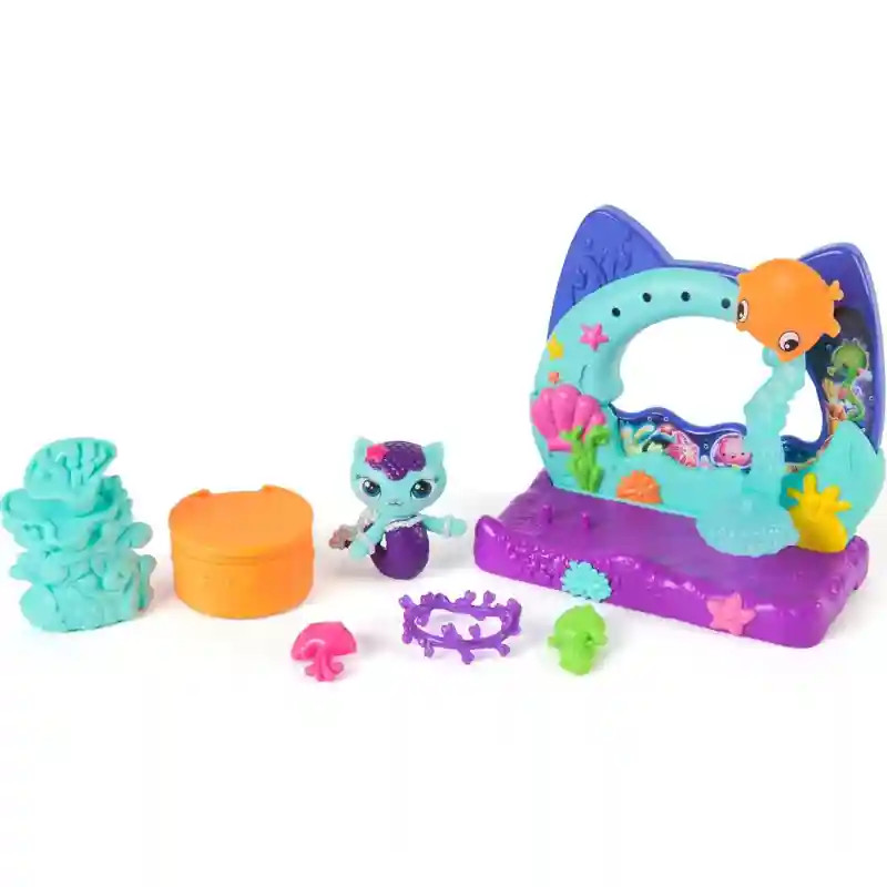 A Gabi babaháza: A film - Szirénke akvárium erkélye játékszett segítségével a gyerekek újraélhetik a film legaranyosabb pillanatait, vagy saját, új történeteket alkothatnak Gabby és barátai világában. A szett tartalmazza a különleges Szirénke (MerCat) figurát filmes kiadásban, csillogó részletekkel és szeretettel megalkotott dizájnnal, valamint több tematikus kiegészítőt, amelyekkel életre kel a történet. A gyerekek imádni fogják a buborékos hintát, ami nemcsak szórakoztató, hanem fidget-játékélményt is kínál. Fedezd fel a titkos meglepetés funkciót, ami még több játékörömöt tartogat! Az erkély bármely Gabby’s Dollhouse babaház (külön kapható!) ablakára felakasztható, így könnyedén bővíthető a gyűjtemény. A mellékelt dekorációs elemekkel személyre szabható a megjelenése. A csomag tartalmaz egy Dollhouse Delivery meglepetésdobozt, benne egy titkos kiegészítővel, valamint egy QR-kódot, amellyel exkluzív jutalmat lehet feloldani a Gabby’s Dollhouse ingyenes alkalmazásban (iOS és Android).