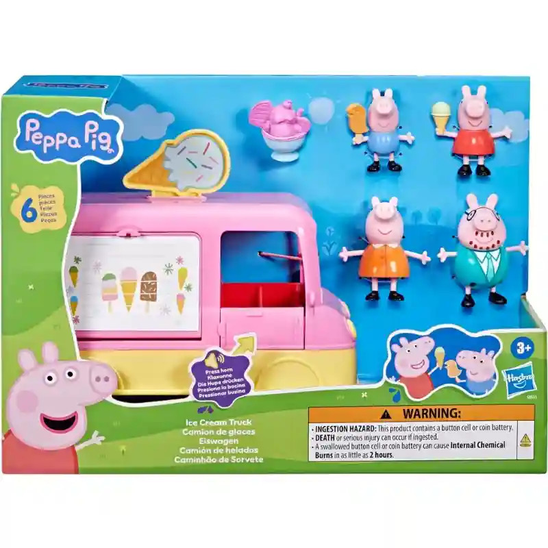 Készülj fel az édes kalandokra a Hasbro Peppa Pig - Peppa és családja interaktív fagyis kocsija játékszettel! A vidám, guruló fagyis kocsi egy pillanat alatt a gyerekszobába varázsolja a nyári hangulatot – csak nyisd le a pult ablakát, és indulhat a fagylaltárusítás! A kocsi dudájának megnyomására vidám hangok és zenék szólalnak meg, mintha csak a sorozatból lépne elő. A szettben Peppa, Mama malac, Papa malac és Zsoli figurái is megtalálhatók, valamint egy óriási fagylaltkehely kiegészítő, amely még több kreatív játékra ad lehetőséget. Akár új történeteket találnak ki a gyerekek, akár a sorozat kedvenc jeleneteit játsszák el, ez a készlet garantáltan sok örömet és fantáziadús játékot nyújt minden Peppa rajongónak 3 éves kortól.