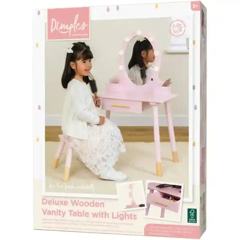 Ivy & Lily fa sminkasztal fénnyel és székkel