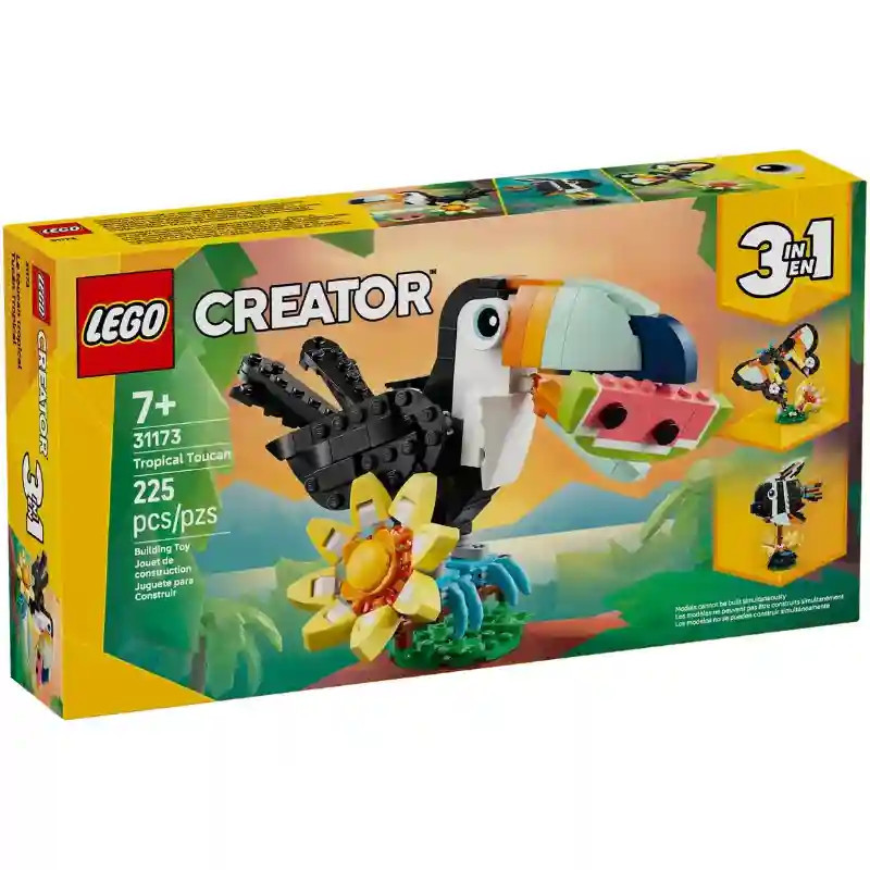 Fedezd fel a trópusok színes világát ezzel a LEGO Creator 31173 Vadállatok: Trópusi tukán (pillangó, hal) építőkészlettel, amely lehetővé teszi, hogy egyetlen dobozból három különböző állatmodellt alkoss meg: egy tukánt, egy pillangót vagy egy halat. Ez a kreatív szett a LEGO sokoldalú világát hozza el a gyerekek számára, és izgalmas, természet ihlette játékélményt kínál. A készlet segítségével a gyerekek fantáziadús történeteket találhatnak ki a trópusi élővilág szereplőivel, legyen szó egy színes madárról, egy kecses pillangóról vagy egy különleges halról. A háromféle építési lehetőség hosszú időn át fenntartja az érdeklődést, hiszen a modellek újra és újra átalakíthatók. Az állatfigurák mozgatható elemekkel rendelkeznek, például állítható szárnyakkal, uszonyokkal és csőrrel, ami még élethűbbé és élvezetesebbé teszi a játékot. Ennek köszönhetően a gyerekek változatos pózokba állíthatják kedvenceiket, és dinamikus jeleneteket hozhatnak létre. A megépített modellek természetes hatású állványokon kapnak helyet, így nemcsak játékra, hanem dekorációként is kiválóan használhatók. Szépen mutatnak polcon, íróasztalon vagy éjjeliszekrényen, ahol büszkén kiállíthatók. Ez a LEGO Creator készlet ideális ajándék fiúknak és lányoknak, akik szeretik az állatokat, a természetet és a kreatív építést. Tökéletes választás születésnapra, ünnepekre vagy bármilyen különleges alkalomra. Az építést a LEGO Builder alkalmazás is támogatja, amely 3D-s útmutatókkal segíti a modellek nagyítását, forgatását és az építési folyamat követését. Ez modern és könnyen használható segítséget nyújt az önálló alkotáshoz. A LEGO Creator 3 az 1-ben trópusi állatos szett egy olyan játék, amely egyszerre fejleszti a képzelőerőt, a kézügyességet és a kreatív gondolkodást, miközben hosszú órákon át tartó, élményekben gazdag szórakozást biztosít.