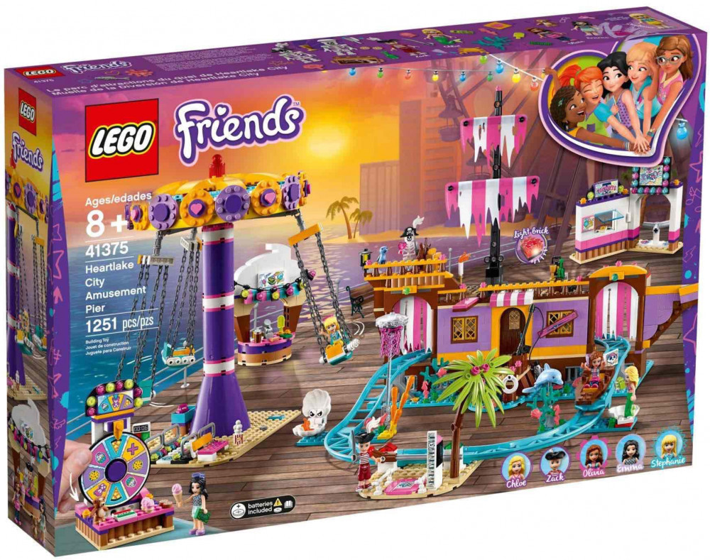 Ez a részletgazdag LEGO Friends 41375 Tengerparti Vidámpark játékszett izgalmas és változatos játékélményt kínál a gyermekek számára. A készlet öt minifigurát tartalmaz: Oliviát, Emmát, Stephanie-t, Zack-et és Chloe-t, valamint egy delfint, egy madarat és két csontváz figurát. A szettben megtalálható a pénztárbódé, a büfé, a szerencsekerék, a láncos körhinta és a kísértet kalózhajó, amelyek együtt egy igazi vidámparki hangulatot teremtenek. A kísértethajó különleges elemekkel van felszerelve, többek között mérőskálával, biztonsági zárral, csónak formájú bölcsővel és sínekkel, amelyek ijesztő jeleneteken vezetik végig a látogatókat. A hajót alumínium függönyök és vitorlák, kormánylapát, aranykehely, palack, lámpások, kincsesláda és különféle kincselemek teszik még látványosabbá. A készletben megtalálhatók tengeri élőlények, például polip, medúza és korallelem, valamint különböző apró részletek, mint aranyérmék, kamera, világító kő és horgony. A vidámpark kiegészítői között szerepelnek nassolnivalók, édességek, belépőkártyák, játékpénz, mobiltelefon, pénztárca és egy plüssmackó is, amelyek tovább gazdagítják a szerepjáték lehetőségeit. A szerencsekerék megforgatásával a gyerekek nyereményeket nyerhetnek, ami még izgalmasabbá teszi a játékot. A készlet működéséhez két darab 1,5V LR41 elem szükséges, amelyeket a csomag tartalmaz. A gondosan kidolgozott részletek valósághű és magával ragadó játékélményt biztosítanak, miközben fejlesztik a képzelőerőt és a kreativitást. A vidámparki folyosók és játékelemek lehetővé teszik, hogy a gyerekek különböző történeteket találjanak ki, és barátaikkal együtt átéljék egy izgalmas nap hangulatát. A kísértethajó és a csontváz figurák egy kis borzongást is csempésznek a játékba, még változatosabbá téve az élményt. A készlet más vidámparki szettekkel is kombinálható, így még nagyobb és látványosabb játékvilág alakítható ki. Ez a sokoldalú játékszett ideális választás minden gyermek számára, aki szereti a kreatív, történetmesélős és élményekben gazdag játékot.