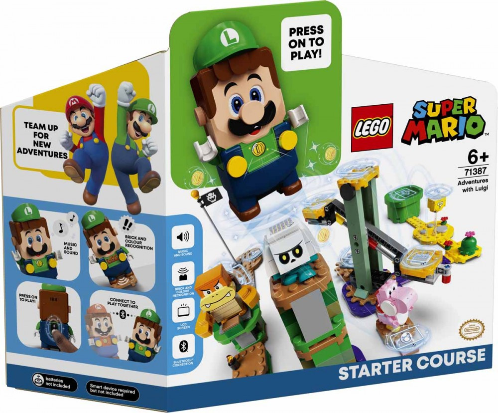 A LEGO Super Mario 71387 Luigi kalandjai kezdőpálya egy interaktív LEGO Luigi figurát tartalmaz, amely önállóan vagy családdal együtt is élvezetes játékélményt nyújt. Luigi színérzékelővel és LCD-kijelzővel van felszerelve, így mozgásra és különböző funkcióelemekre azonnali reakciókat mutat. A digitális érmék gyűjtése közben – forgó, billenő és repülős kihívások során – a beépített hangszóró a Super Mario videojátékból ismert hangokat és zenéket játssza le. A készletben megtalálható Pink Yoshi, Bumm Bumm és Csont-Gumba figurája is, amelyek még izgalmasabbá teszik az utat a startcsőtől egészen a célzászlóig, miközben a gyerekek megfigyelhetik Luigi reakcióit. A LEGO Luigi figura 2 darab AAA elemmel működik (nem tartozék), és valós idejű visszajelzést ad a játék során, így valóban interaktív élményt biztosít. Ez a moduláris LEGO Super Mario játékkészlet remek születésnapi vagy karácsonyi ajándék, szabadon átalakítható, és más Super Mario LEGO szettekkel is kombinálható a még nagyobb játékélmény érdekében.
