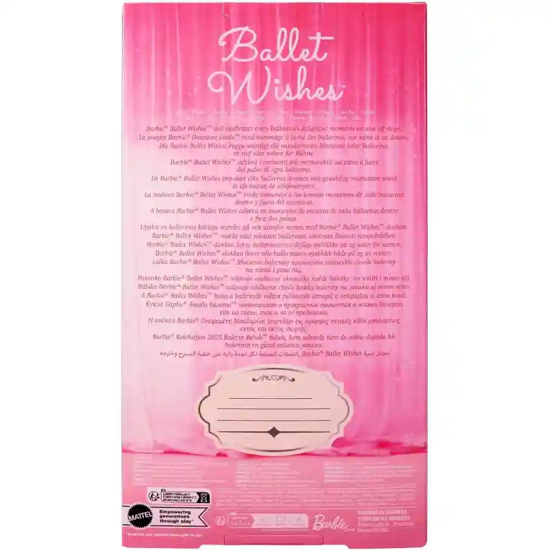 Ez a különleges Barbie Signature elegáns balerina baba a balett világának eleganciáját és szépségét hozza el, így tökéletes választás minden táncrajongó gyermek és gyűjtő számára. A kifinomult megjelenés és a részletgazdag kidolgozás igazán különlegessé teszi ezt a babát. A baba szatén hatású, rózsaszín balerina ruhát visel, amelyet többrétegű tüll szoknya egészít ki, így valódi előadói hangulatot idéz. A csillogó tiara, gyöngy fülbevalók, harisnya és a klasszikus balettcipők tökéletesen kiegészítik a fellépésre kész megjelenést. Az extra mozgatható test több mint 18 hajlítási ponttal rendelkezik, így a baba különféle balettpózokba állítható. Ez lehetővé teszi, hogy a gyerekek újraalkossák kedvenc jeleneteiket vagy saját táncelőadásokat találjanak ki. Ez a Barbie baba nemcsak szórakoztató, hanem inspiráló is, hiszen közelebb hozza a balett világát és támogatja a kreatív játékot. 6 éves kortól ajánlott, és tökéletes ajándék minden gyermek számára, aki szereti a táncot és az elegáns, különleges babákat.