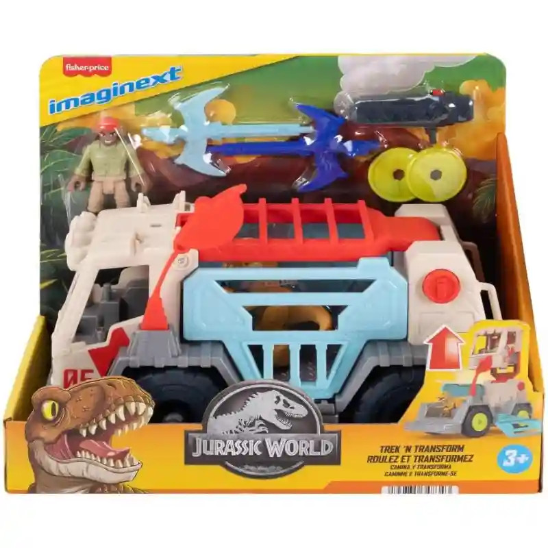 A Fisher-Price Jurassic World - Átalakuló elfogó autó dinóval és figurával játékszett izgalmas dinoszauruszos kalandokra hívja a gyerekeket. A különleges jármű egyetlen gombnyomással átalakítható: kalandjárműből dinoszaurusz-gondozó központtá válik, így még változatosabb játékélményt kínál. A „befogási” módban a kb. 24 cm hosszú jármű ketreccel rendelkezik, amely segít a dinoszauruszok biztonságos szállításában. A ketrec ajtaja lenyitható rámpává alakul, így a dinoszaurusz könnyedén ki- és beszállhat. „Gondozó” módban a jármű egy körülbelül 24 cm magas mobil központtá alakul át, amely röntgenszkennerrel teszi még izgalmasabbá a szerepjátékot. A készlet tartalmaz egy kb. 7,5 cm magas akciófigurát is, aki a vezetőülésben bejárhatja a terepet, vagy felmászhat az irányítótorony létráján, hogy felmérje a helyzetet. A kilövő segítségével egy mini Pteranodon indítható útnak, így biztosítható a küldetés sikere. A kilövő a járműhöz rögzíthető, vagy a figura kézben is használhatja. A játékszett ösztönzi a kreatív történetmesélést és az akciódús szerepjátékot.