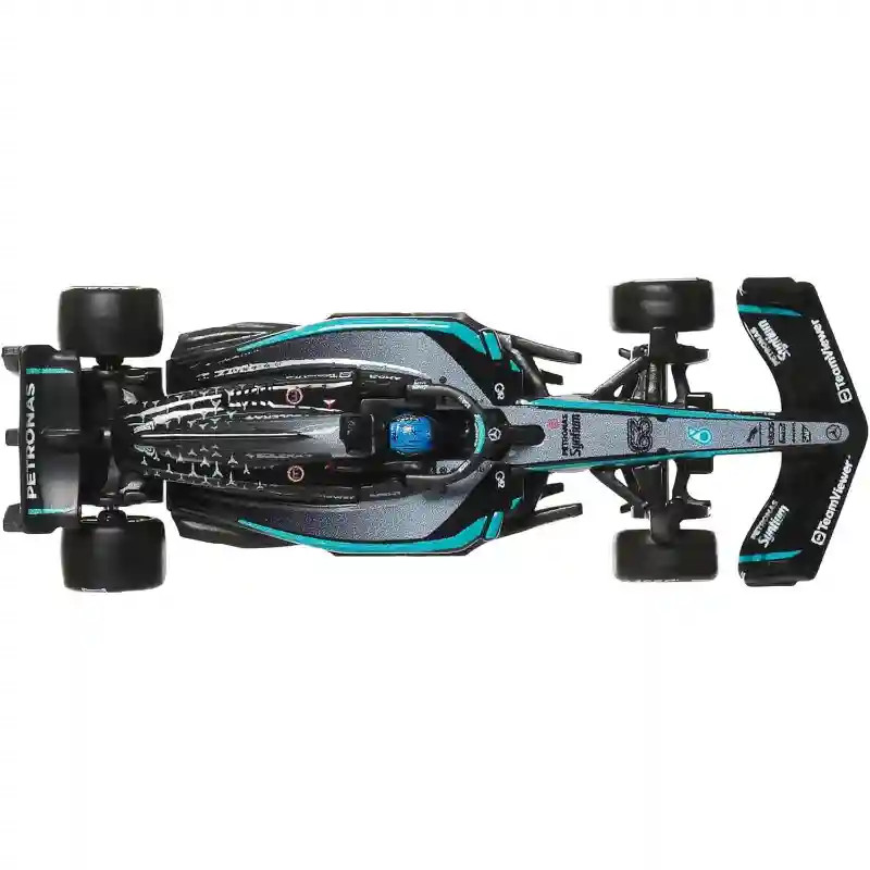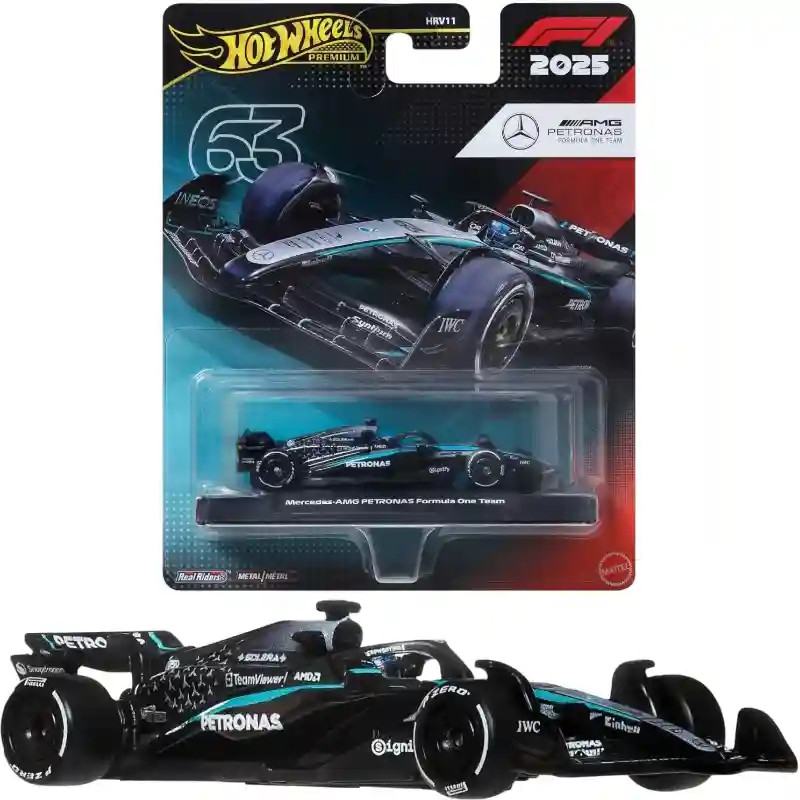 A Mattel Hot Wheels Premium Mercedes-AMG Petronas Formula One Team 1:64 méretarányú kisautóval izgalmas versenyeket rendezhetsz. A szépen kidolgozott részletek még valósághűbb játékot kínálnak a gyerekeknek és még nagyobb értéket a gyűjtőknek. A prémium minőségű autó Real Riders gumiabroncsokkal, Metal/Metal karosszériával készül, és kiváló minőségének köszönhetően még valósághűbb hatást kelt.