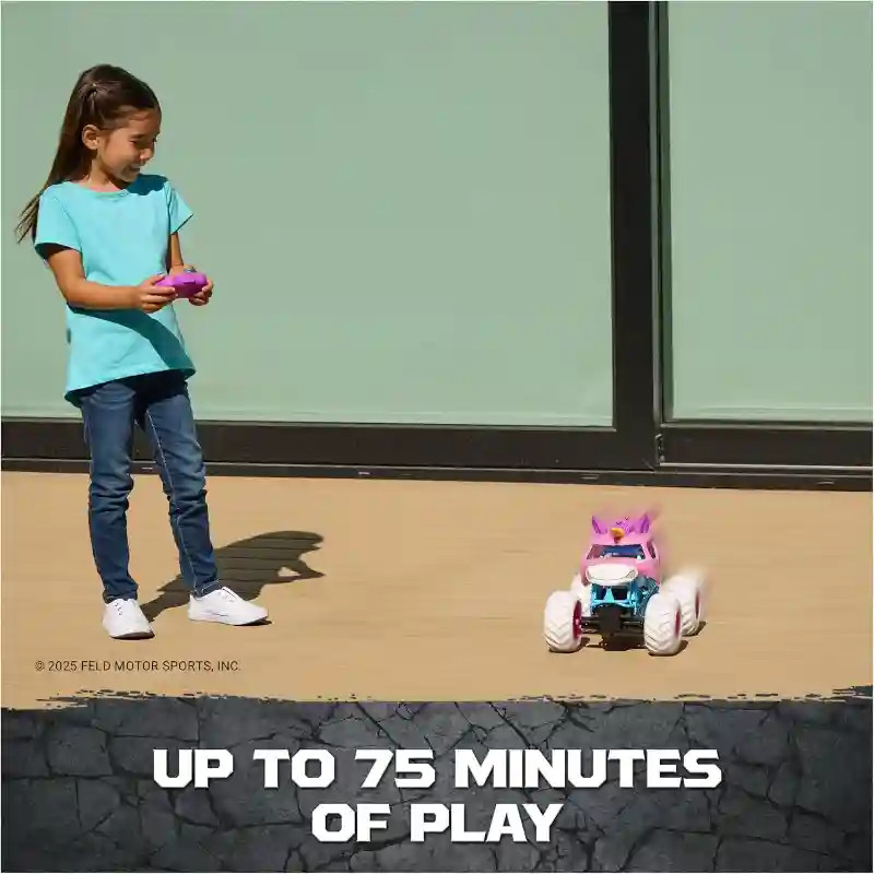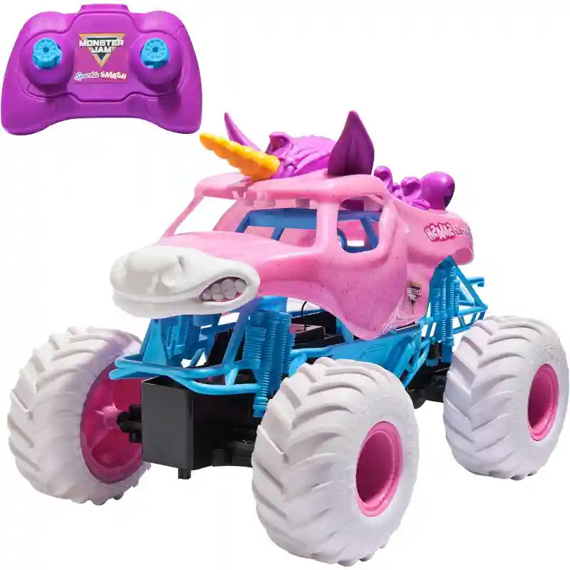 Ez a különleges Monster Jam távirányítós RC Sparkle Smash unikornis monster truck autó egyedi, csillogó unikornis dizájnjával garantáltan kitűnik a tömegből, és varázslatos élményt nyújt minden gyermek számára. A látványos megjelenés mellett igazi akciódús játékélményt kínál, akár beltéren, akár a szabadban használják. Az egyszerűen kezelhető távirányító ideális választás kezdő RC-felhasználók számára is, miközben a 2,4 GHz-es technológia stabil irányítást és gyors reakciót biztosít. A jármű képes nagy sebességre, látványos 360 fokos forgásokra és különféle mutatványokra, így minden játék izgalmas kalanddá válik. A valós Monster Jam járművekhez hasonlóan ez a modell is masszív BKT gumiabroncsokkal van felszerelve, amelyek kiváló tapadást biztosítanak különböző felületeken. A strapabíró kialakítás és a részletgazdag kidolgozás hosszú távú, megbízható használatot garantál. A csomag tartalmazza a szükséges elemeket is, így a játék azonnal elkezdhető. 4 éves kortól ajánlott, és tökéletes választás minden gyermek számára, aki szereti a látványos, gyors és kreatív járműves játékokat.