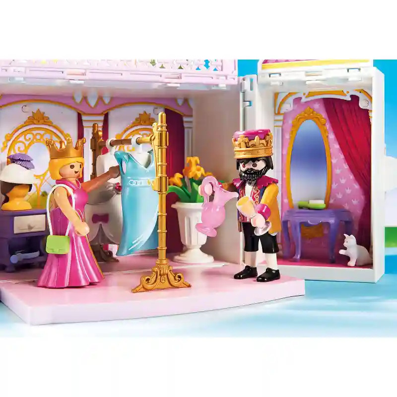 Limitált kiadású PLAYMOBIL® Királyi kastély. A zárható dobozban egy trónterem áll és egy öltözőszoba ruhákkal, valamint kiegészítőkkel. Mérete: kb. 32 x 11 x 24 cm.