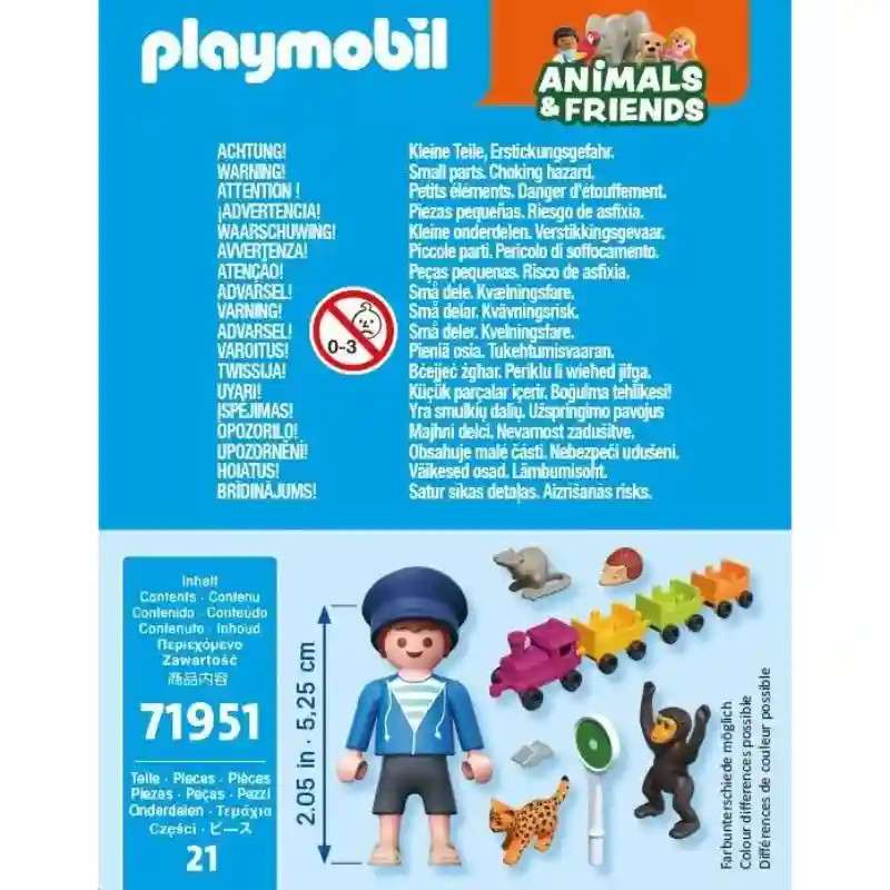 Csihu-hú! Indul a mókás állatvonat, tele vidám utasokkal! A Playmobil 71951 Animals & Friends - Állatvonat szettel a gyerekek egy izgalmas utazásra indulhatnak az Animals & Friends világában. A színes mozdony és a csatlakoztatható vagonok mindegyike helyet kínál egy aranyos állatnak: a gyors gepárdbébinek, a fürge patkánynak, a kíváncsi majomnak és a cuki süninek. A mozdonyvezető kabinjának teteje levehető, így a játék még változatosabb, a vagonok pedig tetszés szerint összekapcsolhatók. A sok apró részletnek és kiegészítőnek köszönhetően minden út egy új, vidám kaland, tele nevetéssel, fantáziával és mozgással – tökéletes választás kis mozdonyvezetőknek és állatbarátoknak egyaránt.