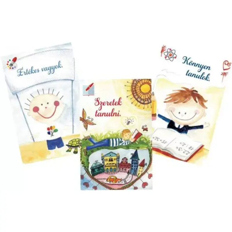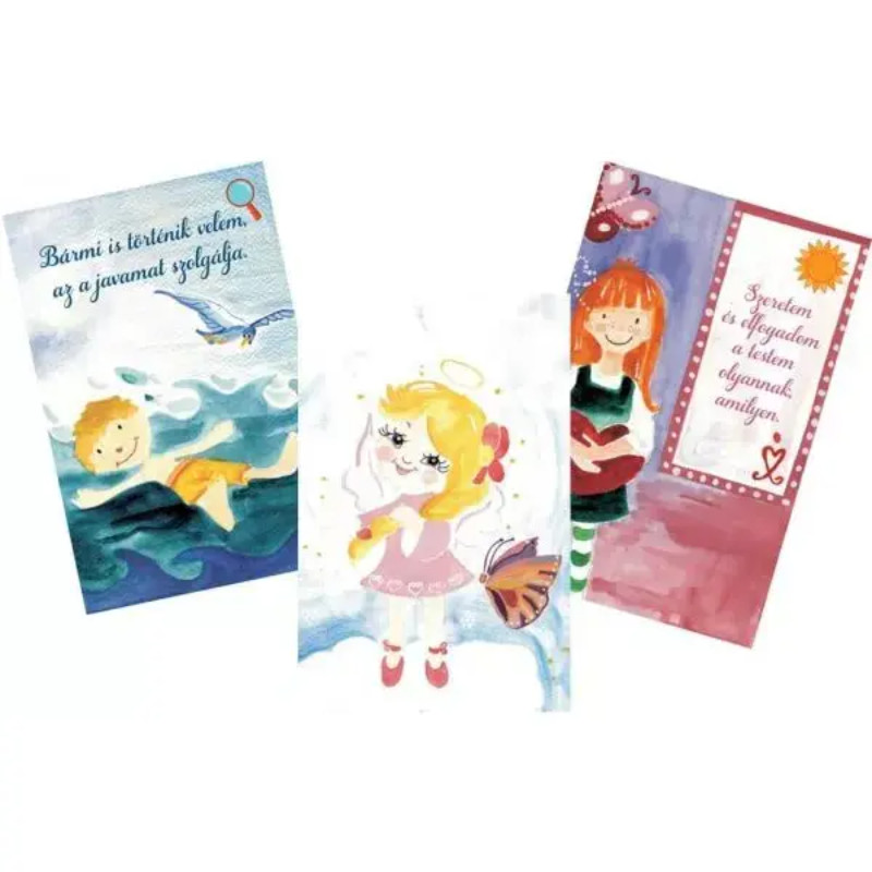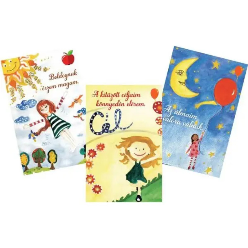 A Pozitív gyerek vagyok személyiségfejlesztő kártyajáték 60 db megerősítés kártyával érkezik. Ha te is keresed a módját annak, hogyan tanítsd meg a gyermekedet játékosan pozitívan gondolkodni, akkor a Pozitív gyerek vagyok személyiségfejlesztő kártyajáték a legnagyobb segítségedre lesz ebben. Az, hogy gyermekednek milyen a hozzáállása a mindennapokban átélt eseményekhez, milyen döntéseket hoz, milyen a személyisége, mire tartja magát képesnek, mi lesz majd belőle, mind-mind a gondolatai eredménye. Az, hogy gyermekednek milyen a hozzáállása a mindennapokban átélt eseményekhez, milyen döntéseket hoz, milyen a személyisége, mire tartja magát képesnek, mi lesz majd belőle, mind-mind a gondolatai eredménye. Hogyan taníthatod meg őt pozitívan gondolkodni? Ez különösen nehéz, főként akkor, ha te magad is hajlamos vagy borúsan látni a dolgokat. Mert miközben szeretnéd, ha a gyermeked optimista lenne, ha örömmel nézne a jövőbe, ha boldog, vidám, kiegyensúlyozott élete lenne, nem tudod mindebben hogyan segíthetnéd őt. Mit mondj? Mit tegyél? Min változtass? Ebben segít a Pozitív gyerek vagyok kártyacsomag 60 pozitív megerősítés kártyával.