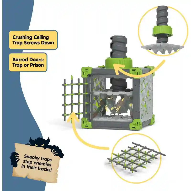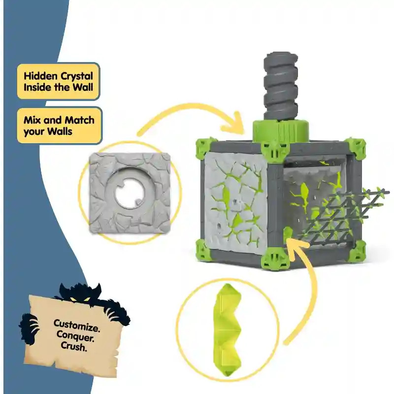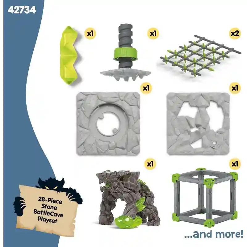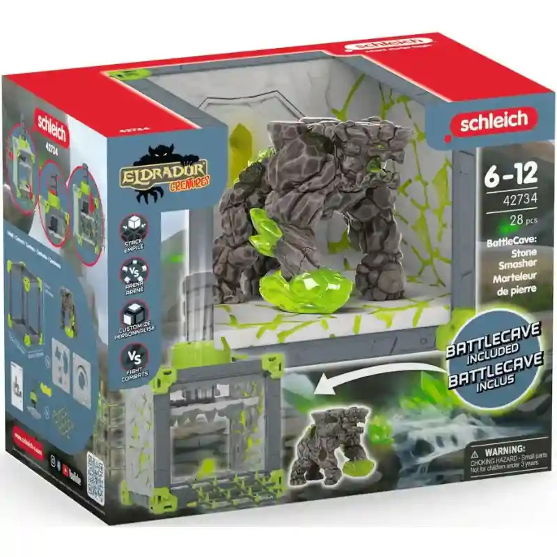 A Schleich 42734 BattleCave harci kőzúzó őrzi a kristályát. A 28 részes szett rácsos kapukkal, csavaros falpanellel és részletgazdag kiegészítőkkel kínál izgalmas, akciódús játékot, ami garantáltan feldobja a gyerekszobát. A schleich® BattleCave elemei szabadon összeállíthatók, egymásra helyezhetők és más barlangokkal kombinálhatók. Így a gyerekek egy hatalmas, egyedi Eldrador arénát hozhatnak létre – a lehetőségek határtalanok. A kőzúzó erős, kőből formált öklével védi a kristályt a behatolóktól. Egyedül is tökéletesen játszható figura, de más Eldrador Creatures lényekkel (külön kaphatók!) kombinálva még izgalmasabb csatákat ígér. Engedd, hogy gyermeked izgalmas ütközetekbe vesse magát a Lávavilág, Jégvilág, Dzsungelvilág, Kővilág és Árnyvilág szörnyei között! Vajon ki szerzi meg a legendás szuperfegyvert? A szett remekül kombinálható a Schleich BattleCave további készleteivel.