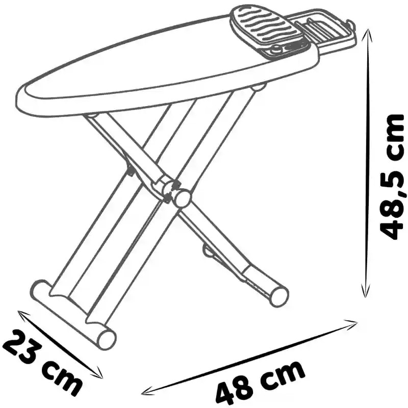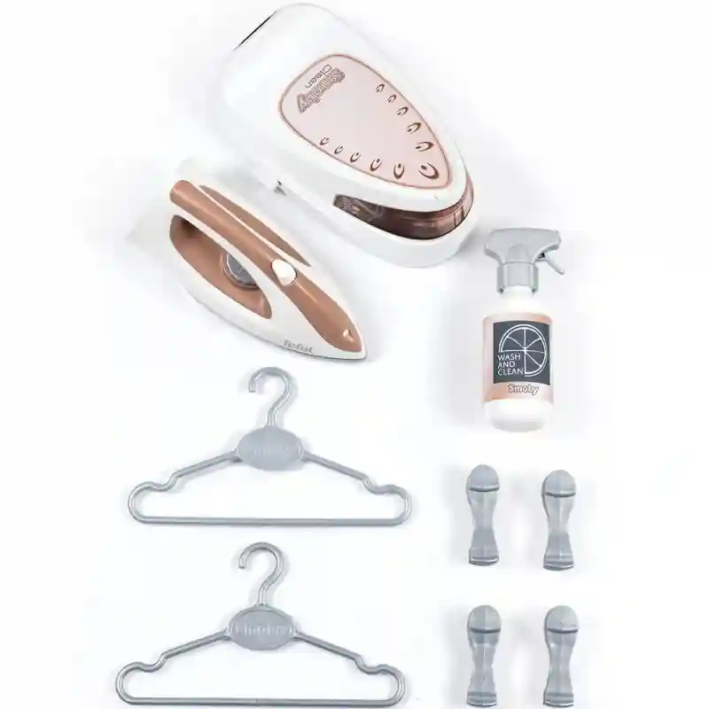 Ezzel a Smoby Tefal játék vasalódeszka gőzölős vasalóval készlettel a gyerekek utánozhatják a szülőket, és saját „ruháikat” is kivasalhatják. A készlet egy nagy vasalódeszkát és egy játék vasalót tartalmaz gőzállomással, amelynek gombja jellegzetes kattogó hangot ad ki, így még valósághűbb a játékélmény. A szerepjátékot több kiegészítő is színesíti. A csomag tartalmaz egy flakont, két vállfát és négy csipeszt, amelyekkel a gyerekek felakaszthatják a „kivasalt” ruhákat. Így a játék során a teljes ruhagondozási folyamatot eljátszhatják. A vasalás után a vasalódeszka egyszerűen összecsukható, így könnyen elpakolható és kevés helyet foglal.