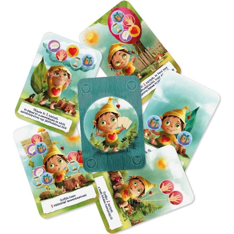 A Szívmanó és a szeretetnyelvek kártyajáték segítség az érzelmi kommunikáció és a kapcsolati kötelékek elmélyítéséhez. A gyermekek egészséges fejlődésének alapja a szeretetteljes, biztonságot adó kapcsolat. Ha a gyermek úgy érzi, hogy szeretik és megértik, akkor könnyebben fejlődik az önbizalma, stabilabb lesz az érzelmi világa, és nyitottabban kapcsolódik másokhoz. A szeretetnyelvek segítenek abban, hogy ne csak adjunk szeretetet, hanem valóban el is juttassuk azt a gyermek szívéhez. A Szívmanó és a szeretetnyelvek kártyajáték célja, hogy a gyermekek és nevelőik érzelmi kommunikációjának fejlődését játékosan támogassa.