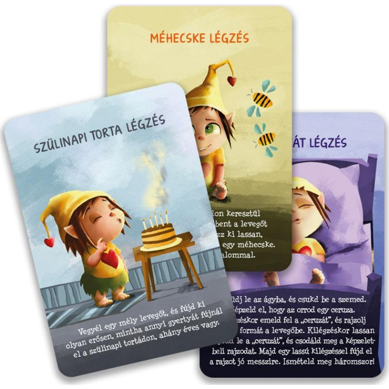 A Szívmanó nyugilégzés kártyák segítenek bennünket abban, hogy támogassuk gyermekünk érzelem szabályozó képességének fejlődését. Az érzelemszabályozás és indulatkezelés elsajátítása már óvodáskortól aktuális feladat. Iskolába lépve pedig nagyon sok gyermek küzd teljesítményszorongással, az ismeretlentől való félelemmel, vagy a serdülőkorba lépve a társas helyzetektől való szorongással. Az ujjvezetős és a feszültségoldó tudatos légzés gyakorlatok alkalmazása hasznos lehet mind érzelmileg megterhelő helyzetekben, mind megelőzés céljából. Ehhez 40 lehetőséget is találunk a kártya csomagban. Az érzelmek megfelelő kezelése kulcs fontosságú az iskolaérettség, a tanulmányi siker és a mentális egészség szempontjából.