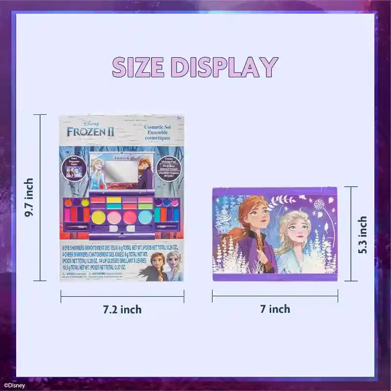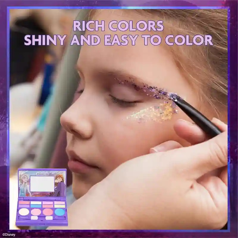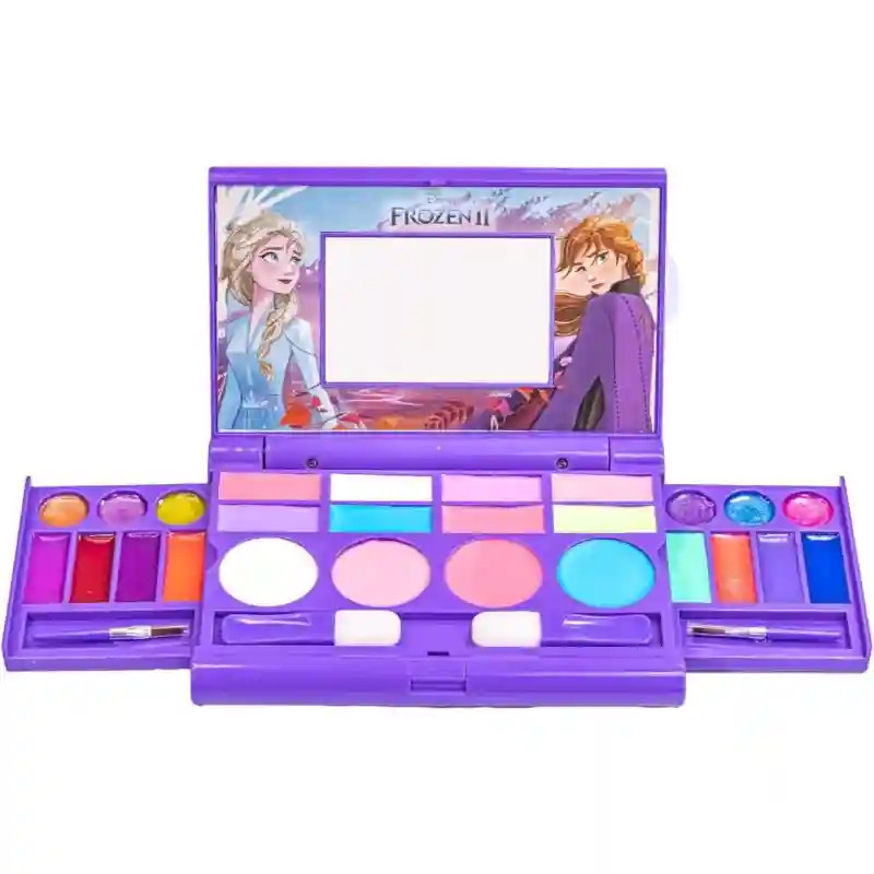 Ez a Jégvarázs összecsukható sminkkészlet 14 féle szájfényből, 6 féle arcpirosítóból és 8 féle szemhéjfestékből áll, amely teljesen biztonságos a hároméves és annál idősebb kislányok számára. A termékek nem mérgezőek, vízbázisúak, így könnyen lemoshatók vízzel, és nem hagynak nyomot! A készlet 14 csillogó szájfényt tartalmaz, olyan színekben mint lila, narancs, piros, magenta, kék, zöld és rózsaszín. Minden szín ragyogó fényt kölcsönöz az ajkaknak. Az ízek között megtalálható a rágógumi és a vattacukor. Az arcpirosítók között szerepel rózsaszín, sárga, kék és klasszikus pirosító árnyalat. A szett 8 különböző színű szemhéjfestéket tartalmaz, beleértve krémes és por állagú árnyalatokat is. A szemhéjpúder színek között megtalálható a kék, sárga, zöld, piros, lila és rózsaszín. Ez az átalakító szett tökéletes időtöltés lehet barátnők között, legyen szó pizsamapartiról, sminkpartiról, születésnapi buliról vagy bármilyen más közös programról. A készlet egy összecsukható dobozban érkezik.